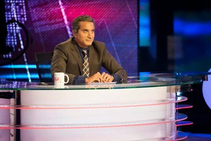 باسم يوسف و فريق العمل أثناء تأدية أغنية "بعد الثورة"